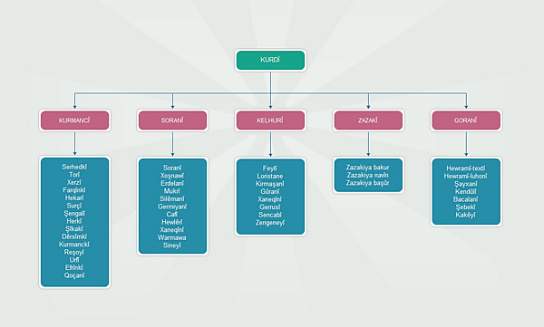 Представляет собой диалектный континуум, состоящий из нескольких диалектных групп[4]. Имеет статус официального в Регионе Курдистан, в Ираке и в Рожаве[5].
