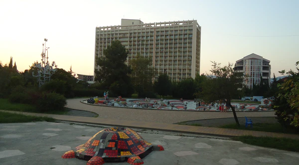 Объектом первоочередной застройки по генеральному плану развития Сочи, разработанном архитекторами Гипргора М. Комаровым, Ф. Янсоном и другими в 1965 году, был намечен Адлерский Курортный городок на 7050 мест. Президиум Совета Министров поручил ВЦСПС рассмотреть вопрос об улучшении качества строительства и благоустройства здравниц в Адлерском районе, возводимых с 1965 г. строительными организациями Главсочиспецстроя Минпромстроя СССР. На стройке, по данным 1967 года, было занято 700 рабочих (Макаров 2012, С.40-41).