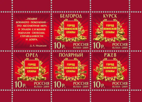 В 2009 году издательско-торговым центром «Марка» для почты России тиражом в 115 тысяч экземпляров выпущена почтовая марка № 1348 номиналом десять рублей из серии «Города воинской славы», посвящённая Курску. Дизайнер — В. Бельтюков[139].