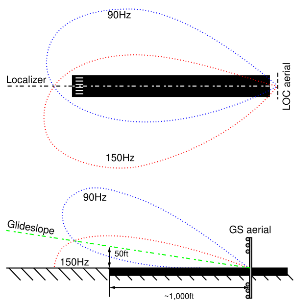 КГС состоит из двух радиомаяков: курсового (КРМ) и глиссадного (ГРМ)[8].