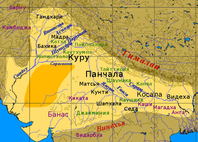 Местоположение царства Куру в ведийский период |
