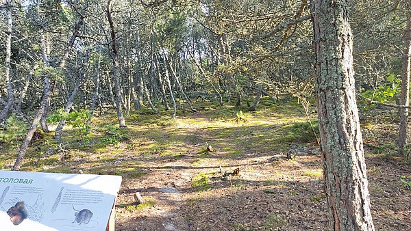 Маршрут знакомит посетителей национального парка с природным комплексом давно остановленной и облесённой дюны. Характерной особенностью маршрута является прохождение трассы по вековым массивам сосен различных видов, ели обыкновенной, ольхи чёрной. На маршруте экскурсанты знакомятся с разнообразием растительных сообществ Куршской косы, узнают о работах, проводимых по закреплению движущихся песков, о взаимосвязи растительного и животного мира косы, о хрупком мире жизни в дюнах.