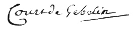 - Кур де Жебелен, Антуан // Энциклопедический словарь Брокгауза и Ефрона : в 86 т. (82 т. и 4 доп.). — СПб., 1890—1907.