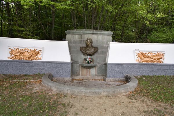 Район фонтана относится к угрожаемой оползневой зоне. Поэтому ещё в 1956—1957 годах по проекту архитектора А. С. Бабицкого, были проведены работы по переносу фонтана, после которых фонтан-памятник приобрёл современный вид. Памятник перенесён от первоначального положения на 30-40 метров. Подпорная стена нового фонтана (около 20 м) перекрыла потенциальное селевое русло, угрожавшее трассе государственного значения. Каптаж источника Сунгу-Су был выведен ниже дороги[12], чтобы исключить обводнение и оползневые явления в насыпи, таким образом фонтаном памятник сейчас называется условно, водотока на нём нет. Скульптором Л. С. Смерчинским выполнен барельеф полководца из искусственного камня[13]. От трассы памятник отделён обширной площадкой с центральной аллеей и дорожками[10].
