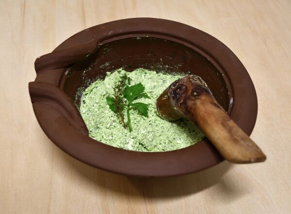 В пищу употреблялись также многие кустарниковые растения и зелень, которые варились вплоть до превращения в мусс и подавались сильно приправленными уксусом, оливковым маслом, перцем или гарумом, например, бузина, мальва, лебеда, пажитник сенной, крапива, щавель кислый, ясменник, листья белой и чёрной горчицы, листья пастернака, яснотка. Гадючий лук (bulbus традиционно переводится как «лук») употреблялся в пищу и считался афродизиаком[11]:XIII, 34[11]:III, 75[20]:21.