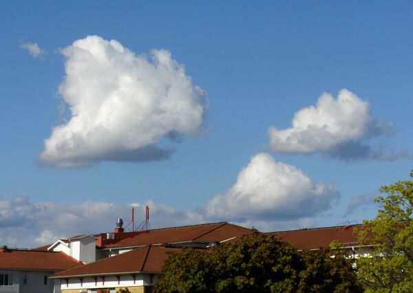 Плоские кучевые облака обычно указывают на хорошую погоду. [23] Средние кучевые облака похожи на плоские, за исключением того, что они имеют некоторое вертикальное развитие, и впоследствии они могут перерасти в мощные кучевые облака или даже кучево-дождевые облака, которые могут вызывать сильный дождь, молнию, сильный ветер, град и даже торнадо[2][20][21].