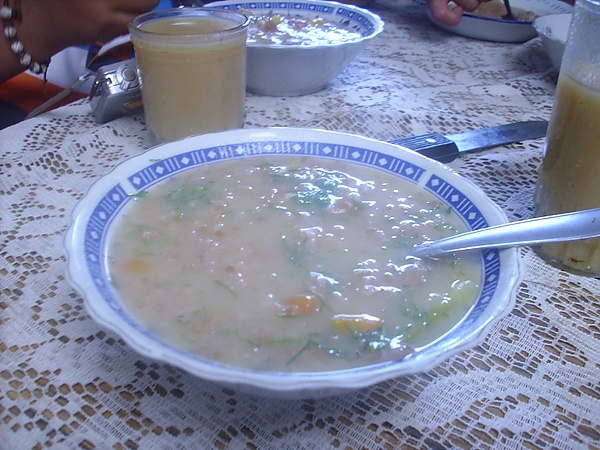 кукуруза, ячмень или пшеница, протертые бобы, капуста, лук репчатый, бульон |
