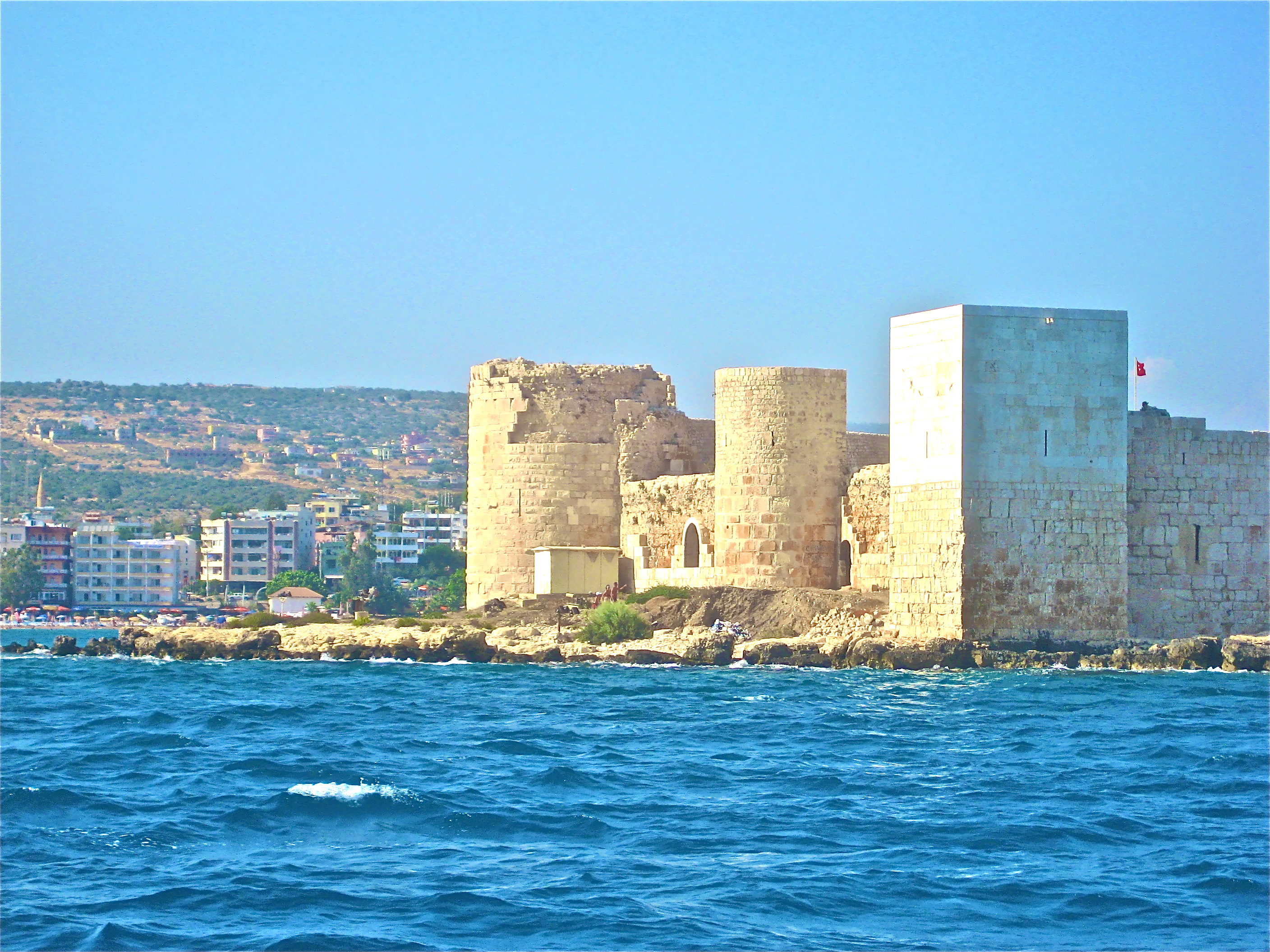 Согласно сообщениям Страбона, в античные времена остров Крамбуса (Крамбус), расположенный рядом с побережьем Корикоса, использовали в качестве своей базы средиземноморские пираты[1][2]. Первые укрепления на острове были построены византийцами, вероятно, при императоре Алексее I Комнине, завоевавшем Корикос около 1099 года и начавшем превращение его в город-крепость[3][4][5]. По утверждению Анны Комнины, в 1104 году её отец послал евнуха Евстафия Киминиана во главе флота с поручением укрепить Корикос, который в тот момент лежал в руинах, с целью защиты его от возможного нападения крестоносца Боэмунда Антиохийского, разорвавшего союз с империей[6][1][7]. После этого в восстановленном и укреплённом Корикосе находился византийский гарнизон во главе со стратигом Страбоном[5].