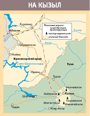Железная дорога Курагино — Кызыл. Строительство дороги начато в 2011 году, но было построен только 1 км пути около Кызыла.