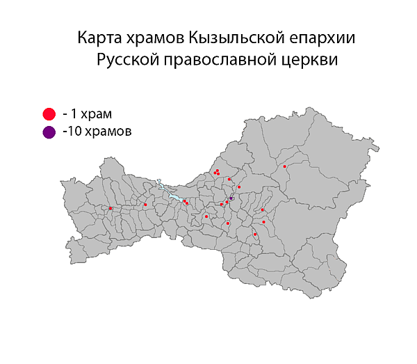 В 2002-11 годах в Кызыле был построен кафедральный собор в честь Воскресения Христова, освящённый патриархом Кириллом 31 августа 2011 года[9].