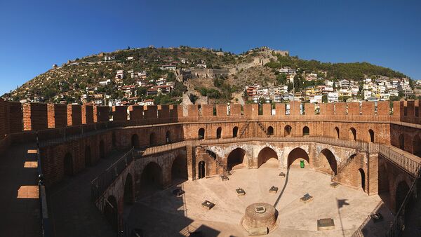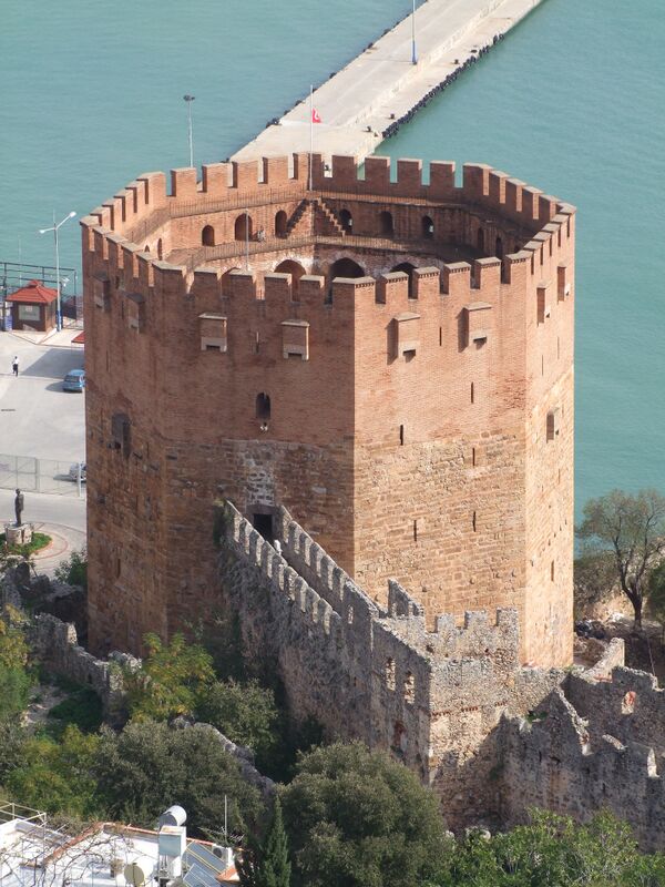 Рядом с Красной башней расположена средневековая судоверфь Терсане (тур. Tersane), строительство которой было завершено в 1228 году по приказу султана Ала-ад-дина Кей-Кубада I. Строительные работы начались в 1227 году и заняли один год[13]. Эта верфь стала первой для сельджуков на Средиземном море, что принесло султану, уже имевшему верфь на Чёрном море, титул «султана двух морей». Терсане является единственной сохранившейся судоверфью сельджукской эпохи в Турции.