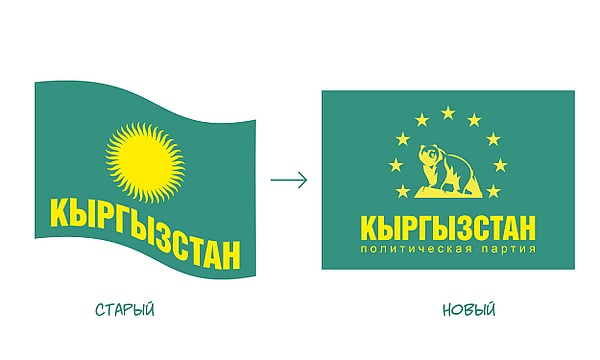 30 октября 2021 года партия "Кыргызстан" обновила дизайн логотипа, флага и печати. На новом логотипе изображены медведь и девять звёзд. 9 звёзд - это семь областей Кыргызстана и два города Ош и Бишкек. Звезды на одном флаге означают единство всех областей Кыргызстана и народа.