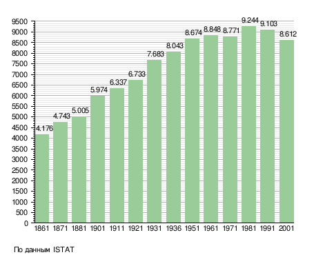 Население составляет 8 558 человек[1] (31-12-2017), плотность населения — 147,17 чел./км². Занимает площадь 58,15 км². Почтовый индекс — 53043, 53044, 53040. Телефонный код — 0578.