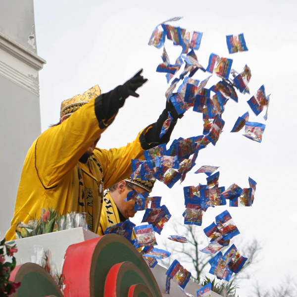 Организаторы карнавала выбирают для каждого года свой девиз, который чаще всего звучит на кёльнском диалекте, отличающемся от литературного немецкого произношения. Распространённая на параде диалектная кричалка «Kölle Alaaf!» означает «Да здравствует Кёльн!» и напоминает застольный тост. Во время массового шествия с повозок разбрасывают в толпу сладости, идущие рядом пытаются их поймать на лету. В костюмированных группах наряду со взрослыми участвуют дети разного возраста[9].