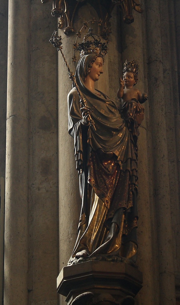 Помимо реликвий трёх волхвов архиепископ Дассельский привёз из Милана в Кёльн и резное изображение Мадонны, считавшееся чудодейственным и глубоко почитавшееся верующими. Эта скульптура была, по всей видимости, уничтожена пожаром в соборе в 1248 году. Впоследствии около 1290 года было создано дошедшее до наших дней изображение Богоматери, на которое и было перенесено название «Миланской Мадонны». Раньше эта статуя стояла над алтарём в капелле Девы Марии. Над ней располагался искусно отчеканенный и богато раскрашенный балдахин, фрагменты которого хранятся в сокровищнице собора. В XIX веке статуя Марии покинула своё первоначальное место и была установлена на новом, возведённом специально для этого пьедестале. Этим же временем датируются скипетр и корона статуи.