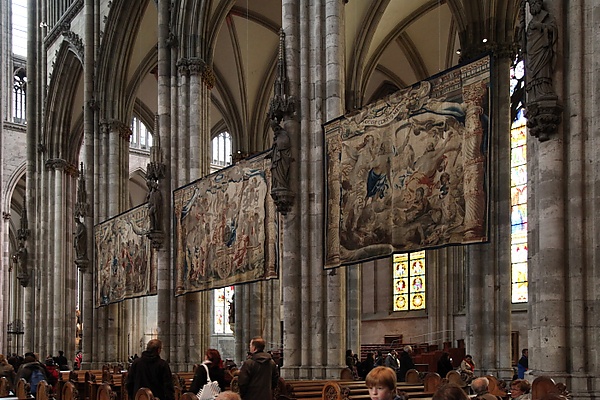 До 1837 года шпалеры были развешены между колонн аркад главного нефа собора. Затем были убраны по неясным причинам. Экспонировались периодически с 1955 года. С 1974 по 1986 год длилась их реставрация. Ныне на праздник Пасхи в нефе помещают восемь больших ковров. Остальное время ради сохранности их хранят в Сокровищнице храма[15].
