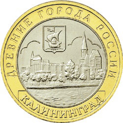 - Кафедральный собор изображён на входящей в серию «Древние города России» юбилейной монете (номинал — 10 рублей), выпущенной пятимиллионным тиражом в 2005 году. В Калининграде недоумение вызвал тот факт, что на монете собор изображён без крыши, то есть в состоянии на 1996 год и ранее[39][40].