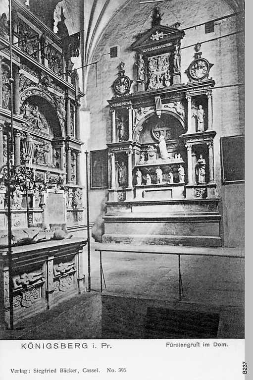 Иммануил Кант был похоронен в «профессорской усыпальнице» Собора в 1804 году и стал последним похороненным в нём человеком. В 1880 году над могилой Канта была возведена часовня в стиле неоготики, которая к концу Первой мировой войны (1918) находилась в весьма плачевном состоянии.[23]