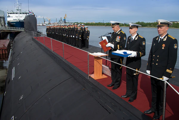 30 декабря 2013 года К-560 «Северодвинск» была принята в опытную эксплуатацию без подъёма Андреевского флага[14][15]. Подъём флага был запланирован на 17 июня 2014 года[16]
