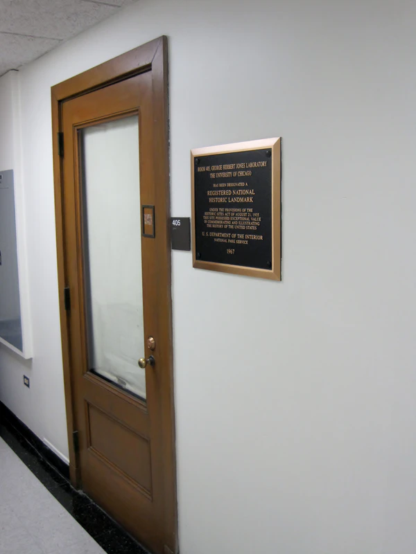 В рамках Манхэттенского проекта химики Чикагского университета начали изучать недавно полученный радиоактивный элемент - плутоний. 18 августа 1942 года в кабинете 405 группа под руководством физика Гленна Сиборга впервые выделила новый элемент. Измерения, проведенные 10 сентября 1942 года, позволили химикам определить атомный вес плутония. Этот шаг в истории сделал возможным создание ядерной энергетики и ядерного оружия[2].
