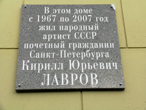 - Установлена памятная доска на доме № 1 по Мичуринской улице в Санкт-Петербурге. Текст: «В этом доме с 1967 по 2007 год жил народный артист СССР, почётный гражданин Санкт-Петербурга Кирилл Юрьевич ЛАВРОВ»[26].