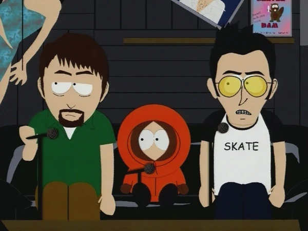 - В студии на интервью Кенни с двумя звёздами, за спиной у диджея можно увидеть надувную куклу Антонио Бандераса. Это отсылка к эпизоду «Отличная загадка группы Korn о пиратском призраке».