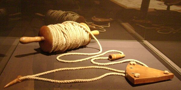 Механический лаг состоит из деревянного поплавка в виде сектора со свинцовым грузом внизу для придания вертикального положения и линя. Линь крепится к деревянному сектору тремя стропами по углам и наматывается на вьюшку.