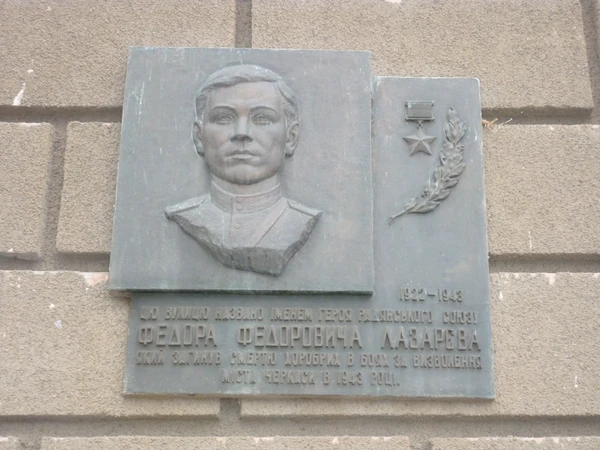 - В 2000 году на Аллее Героев в районном центре Красногородск Псковской области установлен бюст Ф. Ф. Лазарева работы скульптора А. Ф. Маначинского[9].