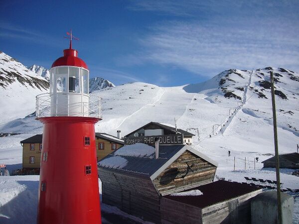 - От перевала Оберальп к Лай-да-Туме ведут две тропинки. Обе начинаются, грубо говоря, с железнодорожного вокзала, на котором путешественник увидит настоящий… маяк! Это самый высоко расположенный маяк в мире (2046 метров над уровнем моря). Уменьшенная копия малого маяка в Роттердаме, символически связывающая исток Рейна с его устьем. По проекту, за маяком должна располагаться баржа, прибывшая своим ходом по Рейну из Роттердама до Базеля, разобранная там на части и доставленная сюда. В ней предусматривалось разместить музей. Но на это у организаторов уже не хватило средств. Хотя от воплощения идеи они, по их словам, не отказались, а лишь отложили на время[16].