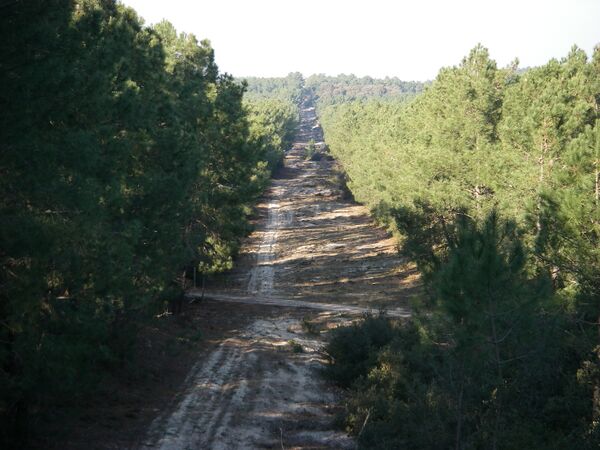 - Лесные участки покрыты сетью просек, прорубленными, в том числе, для ограничения распространения огня и облегчения доступа пожарных бригад, на расстоянии километра друг от друга.