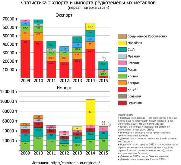 Начиная с Манхэттенского проекта, США были центром по исследованию РЗЭ и связанных с ними технологий. В начале 1980-х гг. центр «силы» переместился в Японию из-за стремительного прогресса в электронике и автомобильной промышленности в стране, а в настоящее время — перемещается в Китай, возможно, благодаря тем же причинам (включая выгодное географическое расположение)[107].