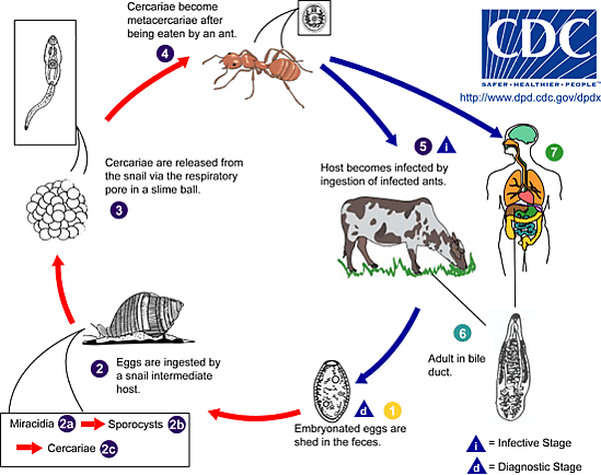 Двуустка поражает, главным образом, печень и желчные протоки копытных и других млекопитающих, вызывая у них дикроцелиоз[3][4][5].