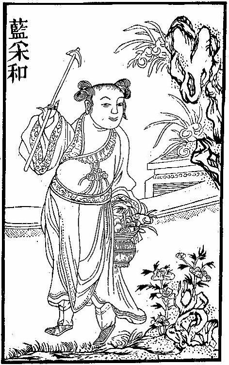 Существуют изображения, на которых он — человек в возрасте, на более поздних изображениях Лань Цайхэ часто девушка. В корзине за спиной — различные цветы, выражающие идею бессмертия (иногда хризантемы). Это своего рода юродивый: он обут в один сапог, летом ходит в шерстяной рубашке, а зимой спит на снегу.
