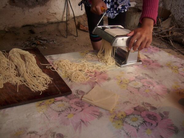 - Блюдо из теста, приготавливаемого непосредственно перед употреблением (домашняя лапша). Тесто раскатывают в пласт и нарезают на полоски, затем отваривают[2].