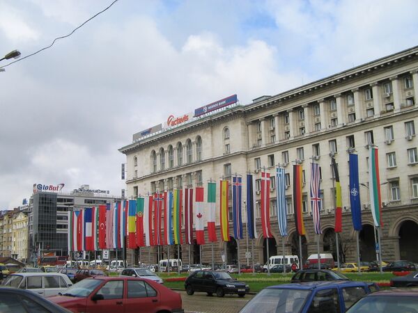 Ансамбль включает в себя бывший Партийный дом (бывшая штаб-квартира ныне несуществующей болгарской Коммунистической партии), сейчас используется как административное здание Народного Собрания Болгарии, в центре, и два здания по бокам: в одном сейчас размещаются ЦУМ и Совета Министров Болгарии, а другое занято резиденцией Президента, гостиницей «Балканы» и Министерством образования.