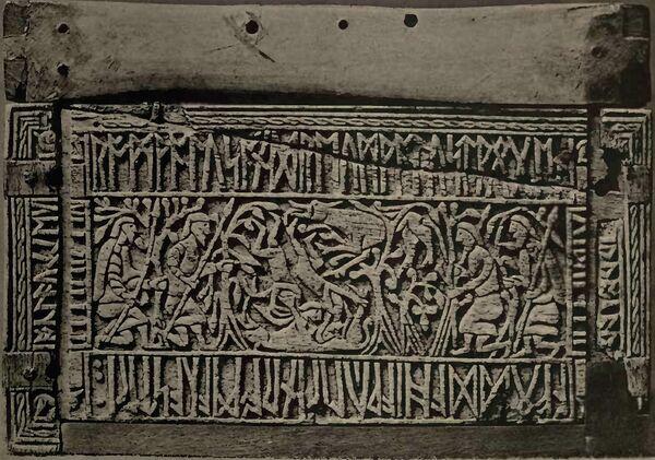 Ларец Фрэнкса[1] (англ. Franks casket, или auzon runic casket) — резная шкатулка, выполненная из кости кита. Согласно информации с сайта Британского музея, история предмета неизвестна вплоть до середины XIX в., когда ларец был приобретён Фрэнксом (англ. Augustus Wollaston Franks, английский антиквар; отсюда название «ларец Фрэнкса») у торговца в Париже. По словам последнего, ранее ларец принадлежал французскому профессору из города Клермон-Ферран, а тот приобрёл его у "буржуазной" семьи в Аузоне, где она использовалась как шкатулка для шитья. Позднее шкатулка была передана в Британский музей. Надпись, окаймляющая сцены из древнегерманских, римских и библейских сказаний, вырезанная на руническом ларце Фрэнкса — самый значительный среди ранних англосаксонских рунических памятников.