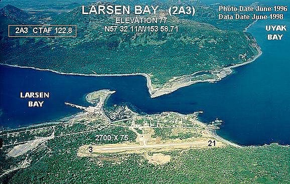 Аэропорт Ларсен-Бей находится на высоте 27 метров над уровнем моря и эксплуатирует одну взлётно-посадочную полосу[1]: