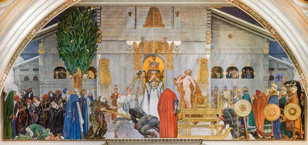 Самыми значимыми своими работами Карл Ларссон считал монументальные полотна и фрески для школ, музеев и других общественных зданий. Его последнее творение, картина маслом «Зимняя жертва» (6 метров × 14 метров), выполнялась по заказу Национального музея в Стокгольме (стены которого уже украшали несколько работ Ларссона) и была завершена в 1915 году. На фреске изображена жертва короля Домальда в храме в Уппсале. Однако когда картина уже была готова, совет музея отклонил заказ.