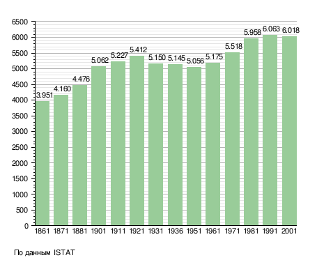 Население составляет 6 329 человека[1] (31-5-2019), плотность населения составляет 253,46 чел./км². Занимает площадь 24,97 км². Почтовый индекс — 51036. Телефонный код — 0573.