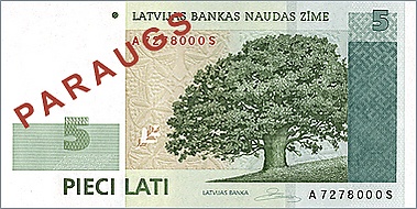 - банкноты достоинством 5, 10, 20, 25, 50, 100 и 500 латов.