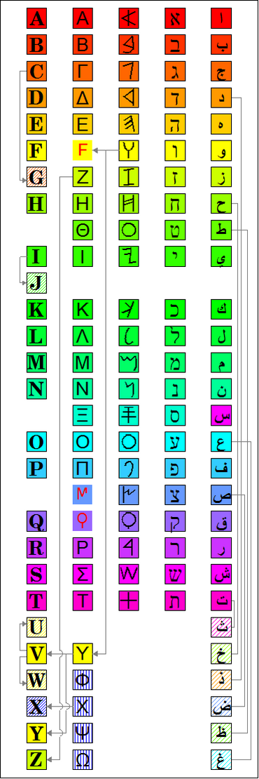 | Z | Ζ | З | ז | ﺯ — ﺰ, ﻅ ﻇ ﻈ ﻆ | ز | ||