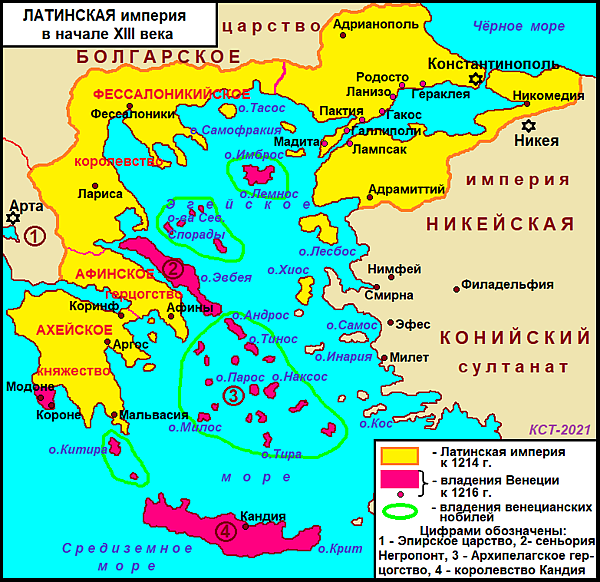 Латинским сеньориям в Греции пришлось вести войны с Эпирским княжеством, а потом и с Никейской империей[3].