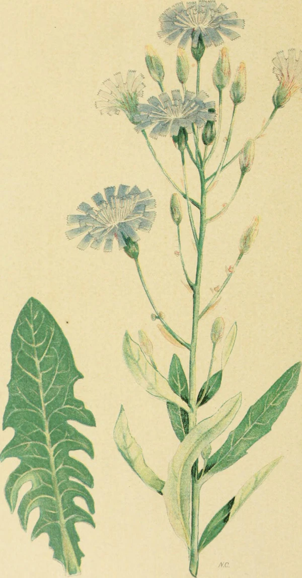Сорное растение с голубыми цветками, собранными в корзинки, с лопастными или рассечёнными листьями.