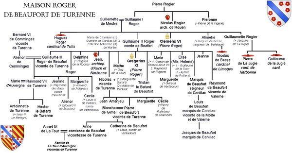 «Латур» (что значит «башня») — распространённая фамилия среди французских феодалов. Родословная Латуров из Оверни — вассалов графов Оверни — прослеживается с XIII века. Весьма рано род распался на две линии. Благодаря свойству с папами Климентом VI и Григорием XI старшая ветвь за два поколения принесла католической церкви трёх епископов, двух кардиналов и латинского патриарха Антиохии.