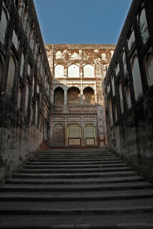 За крепостными стенами, внутрь которых ведут парадные ворота Аламгири (архитектурный символ Лахора — постройка времён Аурангзеба), находятся шедевры могольской архитектуры — Зеркальный дворец и Жемчужная мечеть, строившиеся в середине XVII века для Шах-Джахана с применением экзотических для Индии привозных материалов — таких, как алеппское стекло.