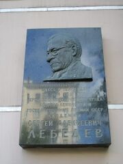 - На стене дома по адресу улица Новопесчаная дом № 21, корпус 1, в котором жил Лебедев, установлена мемориальная доска.