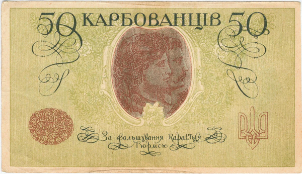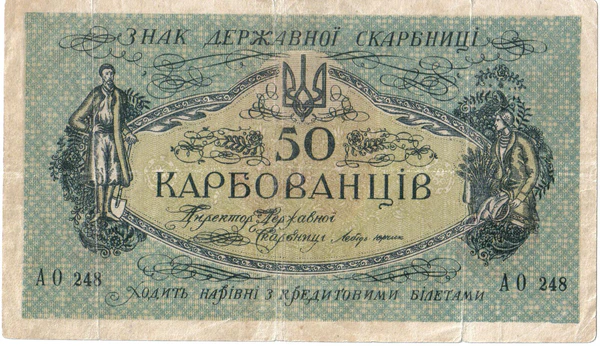 30 марта 1918 Центральная Рада объявила о выпуске знаков государственного казначейства номиналами в 5, 10, 25, 50 карбованцев со сроком действия до 1 марта 1924 года. 6 апреля население Киева впервые увидело 25 карбованцев, несколько позже появилась купюра в 50 карбованцев, — Население прозвало их «лебедь-юрчиками» (по подписи).