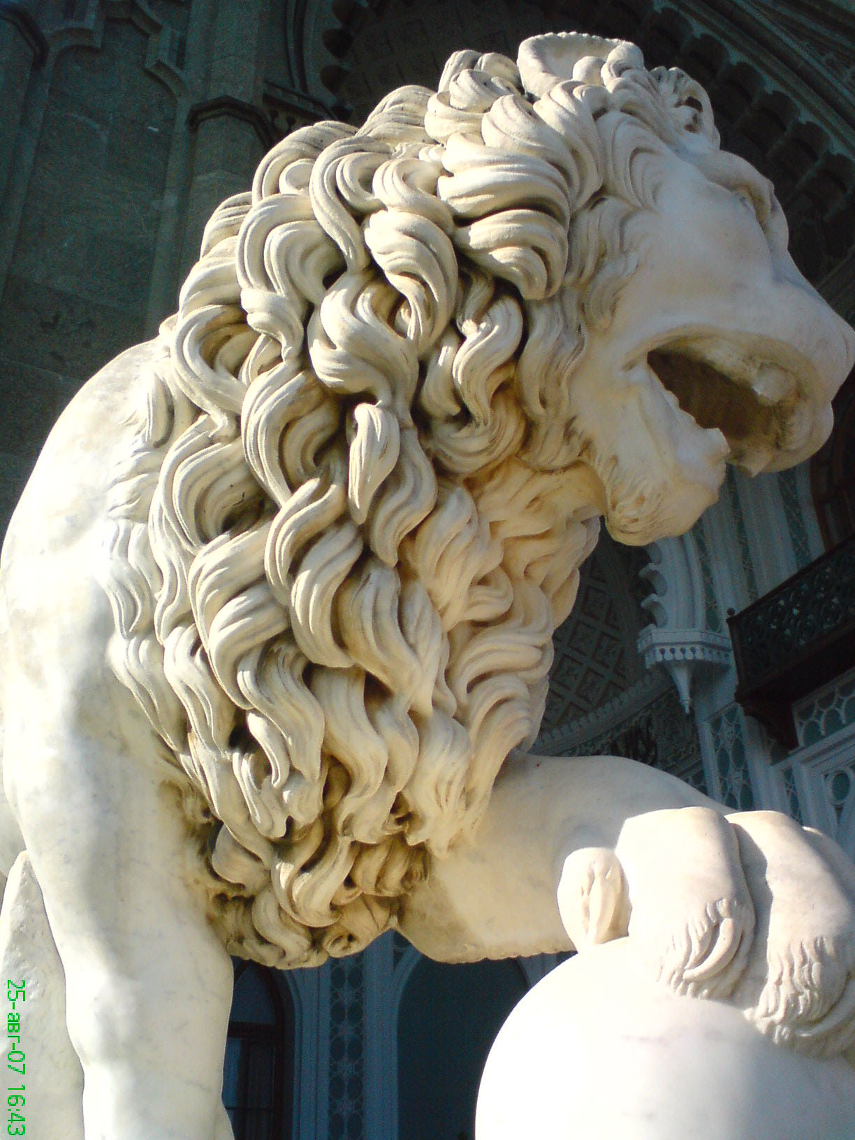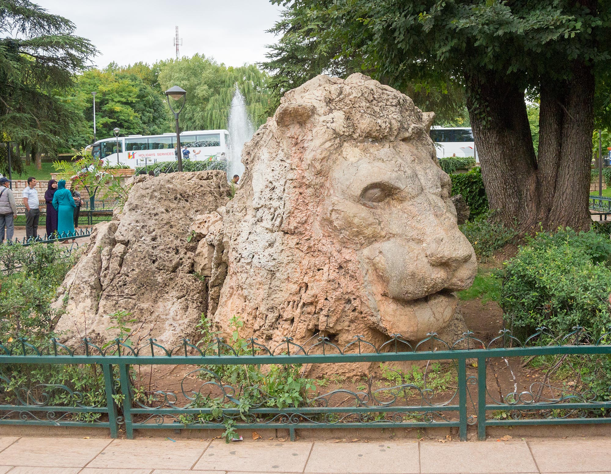 Мраморный лев на террасе Алупкинского дворца | Памятник последнему берберйскому льву в Атласских горах (г. Ифран, Марокко) |