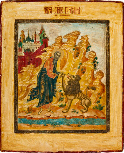 Христианский святой V века, преподобный Герасим Иорданский, согласно преданию, однажды встретил в пустыне раненого льва и вылечил его. В благодарность лев стал служить старцу как домашнее животное до самой его кончины, после которой и сам умер на могиле и был зарыт близ гроба святого[182].