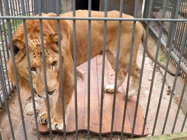 Начиная с конца XVIII века, львы — одни из главных животных в зоопарках[143]. Более 1000 африканских и 100 азиатских львов содержатся в зоопарках всего мира[144]. Цели содержания различные — это и сохранение вида, и выставка экзотических животных[145]. В неволе львы могут доживать до 20 лет. Аполлон, лев из зоопарка Гонолулу, умер в возрасте 22 лет в августе 2007 года. Его две сестры, родившиеся в 1986 году, были живы в 2007 году[146]. Программы размножения львов в зоопарках осуществляются таким способом, чтобы избежать скрещивания двух разных подвидов[147].